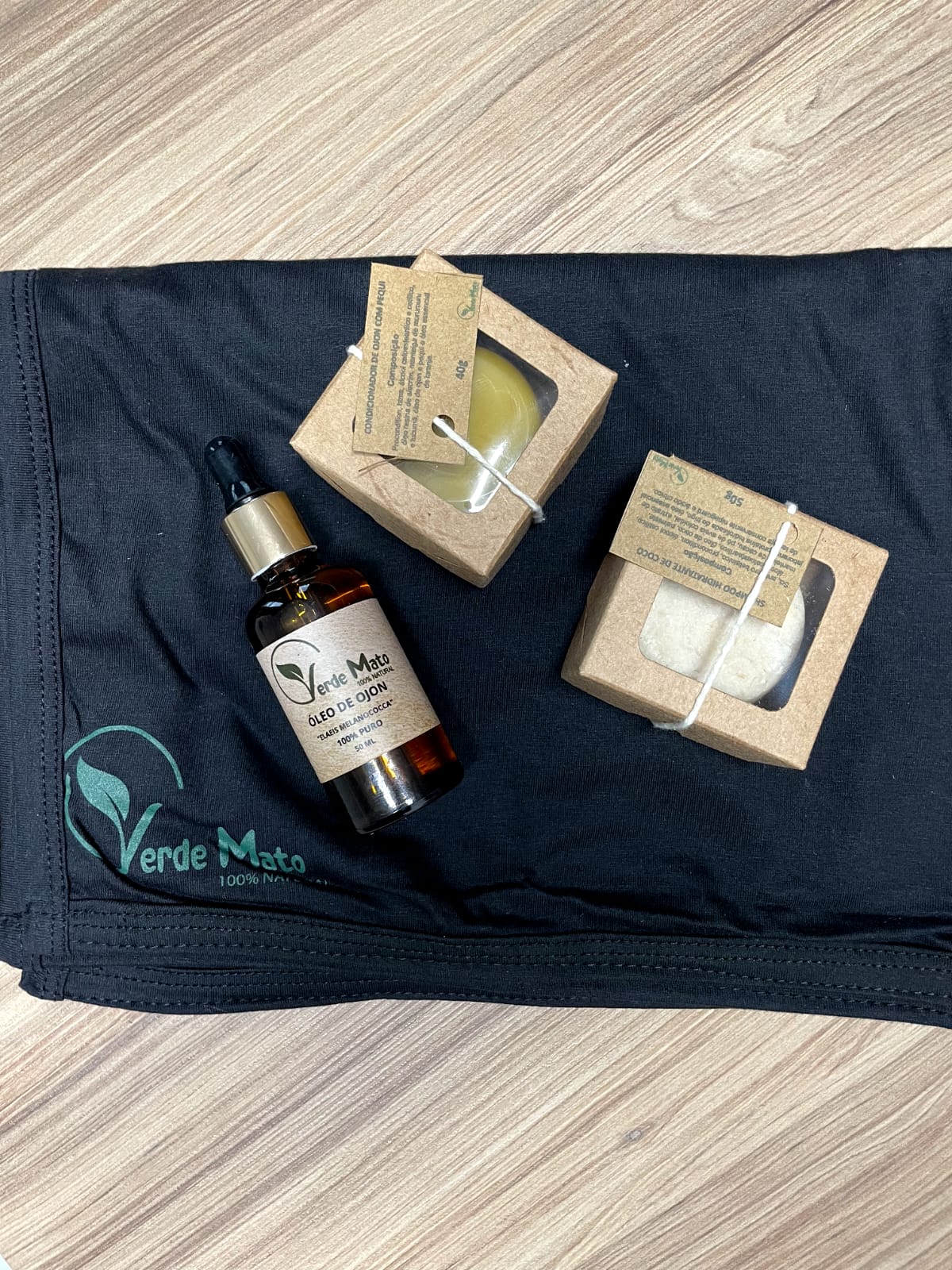 Dentro deste kit, você poderá escolher entre o shampoo hidratante de Coco, o shampoo de Maracujá para cabelos oleósos ou o shampoo antibacteriano de Andiroba.